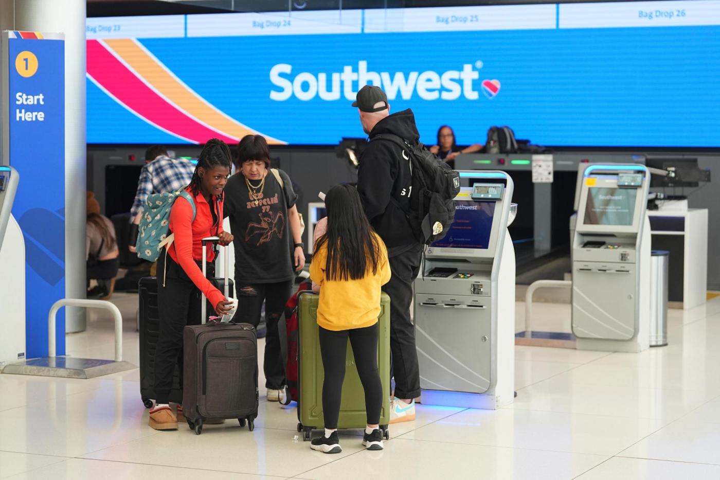 FILE – Travelers wait at the check-in counter for Southwest Airlines in Denver International Airport Thursday, Dec. 19, 2024, in Denver. (AP Photo/David Zalubowski, File)