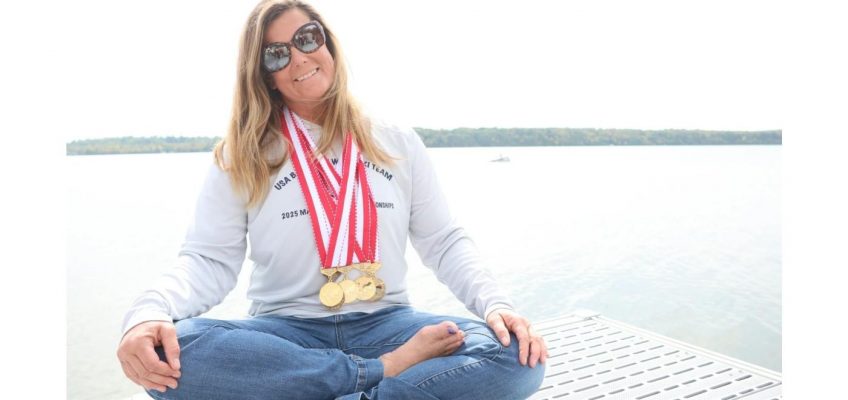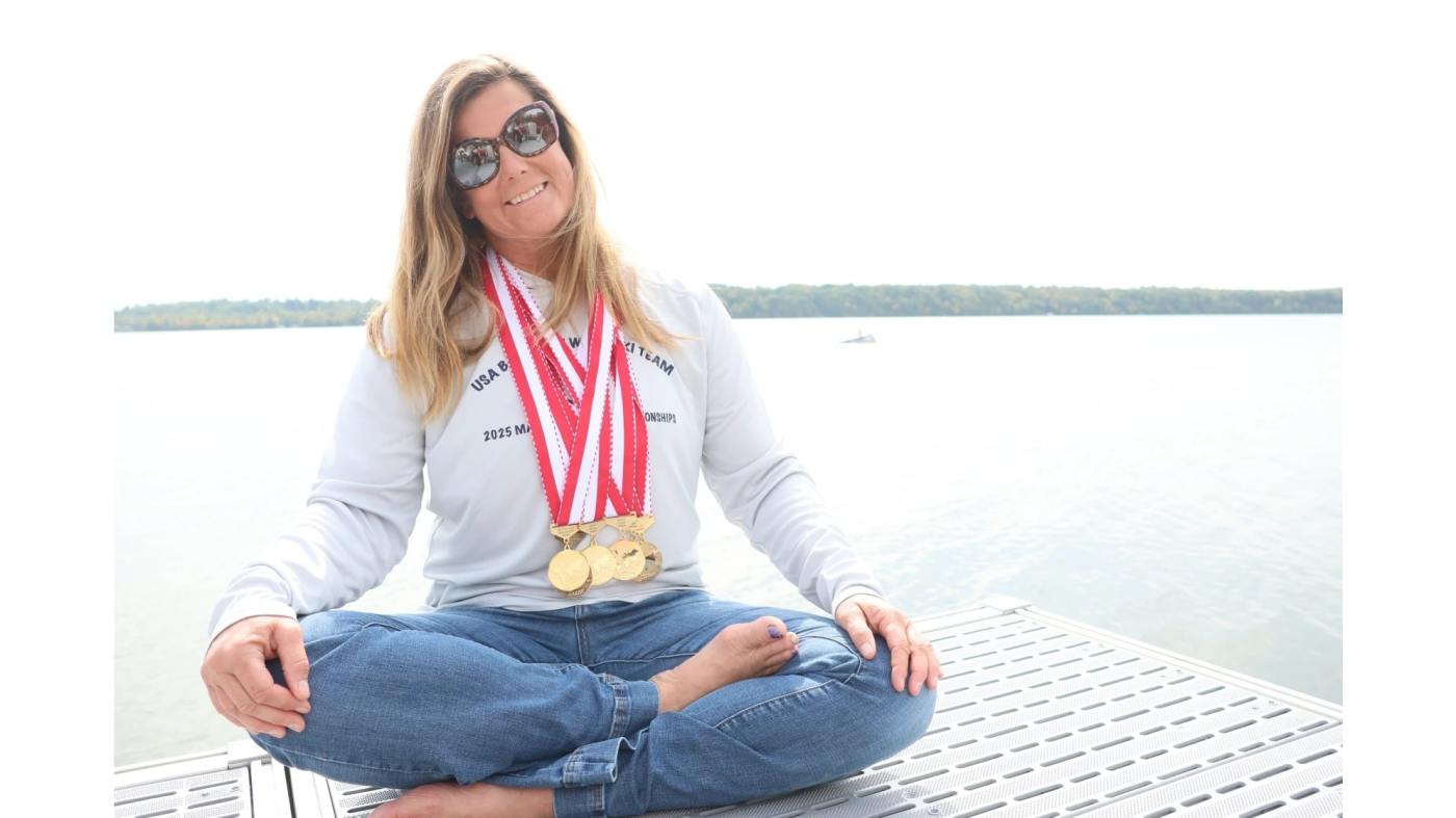 The 55-year-old Perham resident represented the U.S. at the World Masters Barefoot Championships in Paris, where she collected several medals — including the gold for women of all ages in the barefoot ski jump.