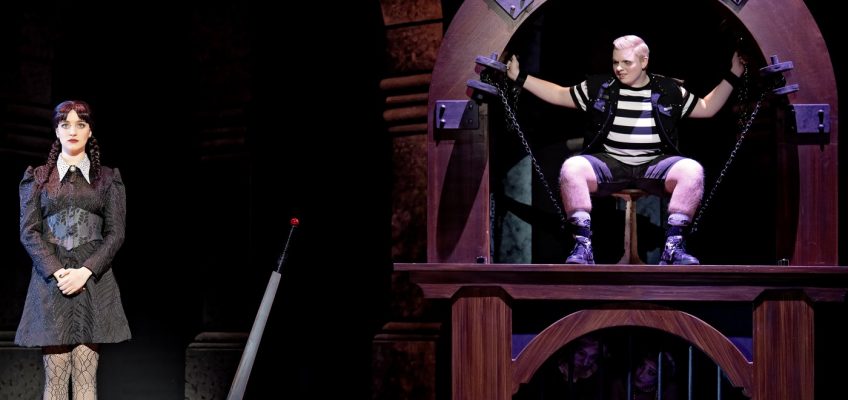 What remains is a series of character studies, mostly in song. But only four of the 26 tunes are musically memorable, most notably the spicy salsa intro to the clan, “When You’re an Addams,” and Morticia’s clever, Vaudeville-esque dance with death, “Just Around the Corner.” Younger brother Pugsly’s “What If” is a sweet ballad (kudos to Logan Clinger, the only performer who seemed to crack the code of the Ordway sound system and make every word understandable), as is Gomez’s “Happy/Sad,” addressed to his departing daughter.