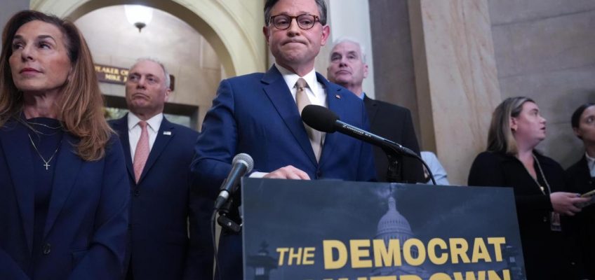 “We want to protect hardworking federal workers,” House Speaker Mike Johnson said Thursday morning, before criticizing his counterparts. “Democrats are the ones who have decided to inflict the pain.”