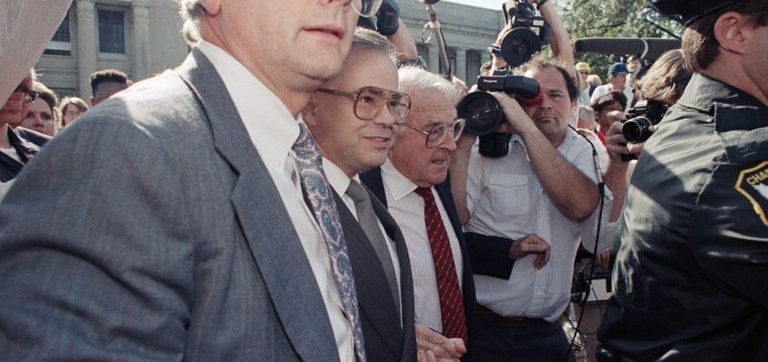 On Oct. 5, 1989, a jury in Charlotte, North Carolina, convicted evangelist Jim Bakker of using his television show to defraud followers. Initially sentenced to 45 years in prison, Bakker was freed in December 1994 after serving 4 1/2 years.