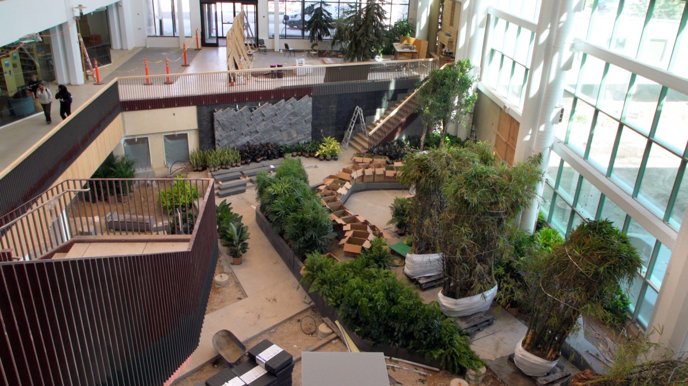 One aspect of the update Okada and project partners expressed excitement over is increased seating. Because the space has access points to other organizations and resources, and stays open during the fall and winter months, people often enjoy sitting in the park, Okada said, but before the renovation, options were limited. As construction continues through October, the park will soon have multiple cushy seating options in the west and east entrances, as well as along the path of the indoor green space, she said.