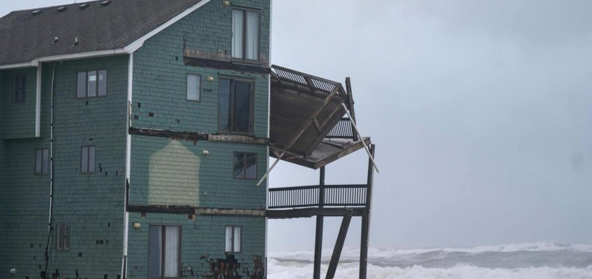 The waves were ferocious at the Hatteras Island town of Buxton, where several beachfront homes have fallen into the water in recent weeks. One house was losing its pilings Sunday and appeared close to collapsing.