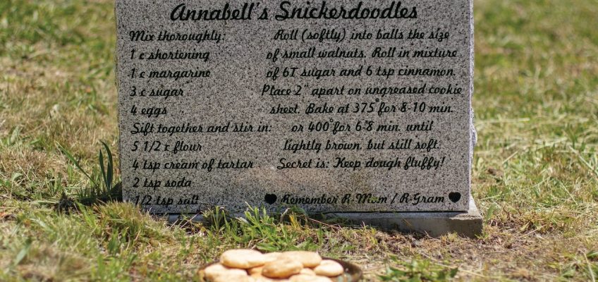 A: A lot of modern gravestones are very personalized. Maybe 200 years ago, or even 100 years ago, there would be one carver who would make a bunch of templated stones, and then just add someone’s name and dates. It was pretty standardized. Nowadays, it’s a blank slate that you get to fill in based on what was important to you. That might be a recipe, a music quote or even a call number to someone’s book in the library or a reference to their dogs. In a lot of cases shared in the book, these people were home cooks. They hosted the holidays. They loved food. There are a lot of central community figures, the ones who would do the volunteer event, host Christmas or Thanksgiving or make people’s special birthday treats. They used food to show love and celebrate other people.