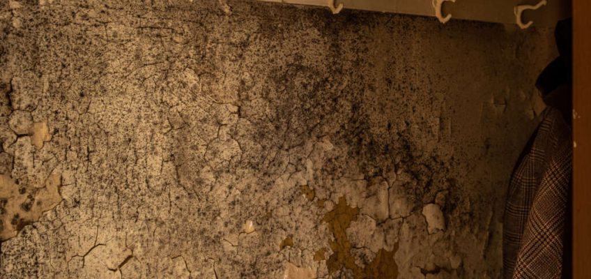 A closet with water damage and mold in an apartment at NYCHA’s Red Hook Houses. The City Council will hold an oversight hearing next Monday, Oct. 27 on mold remediation at NYCHA. (Adi Talwar/City Limits)
