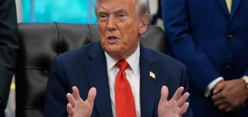 Trump’s comments to reporters at the White House came in response to questions about a New York Times story that said he had filed administrative claims before being reelected seeking roughly $230 million in damages related to the FBI’s 2022 search of his Mar-a-Lago property for classified documents and for a separate investigation into potential ties between Russia and his 2016 presidential campaign.
