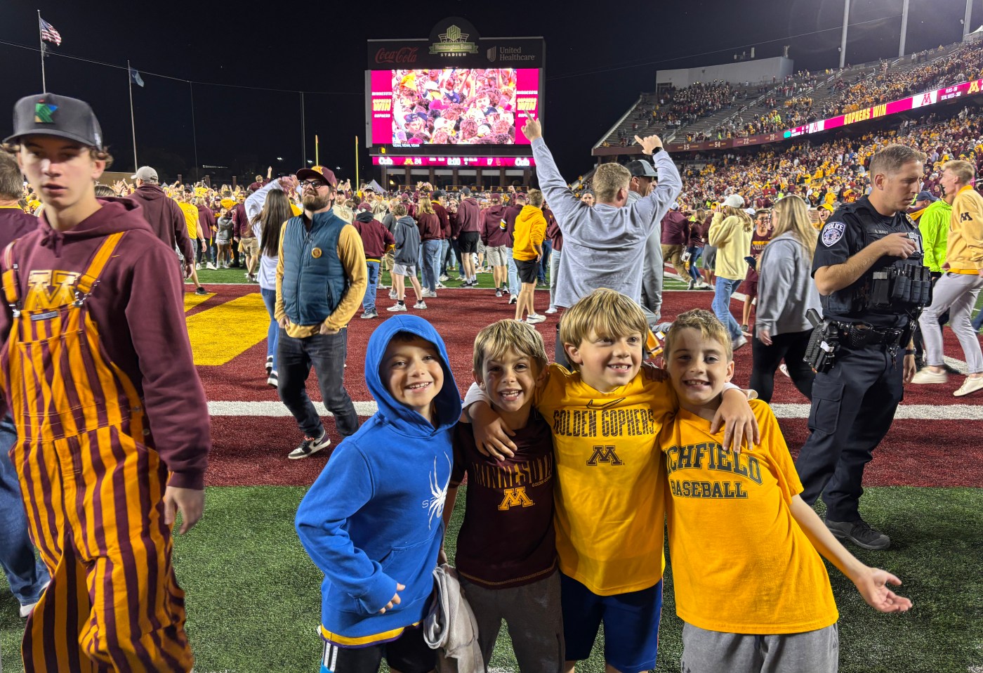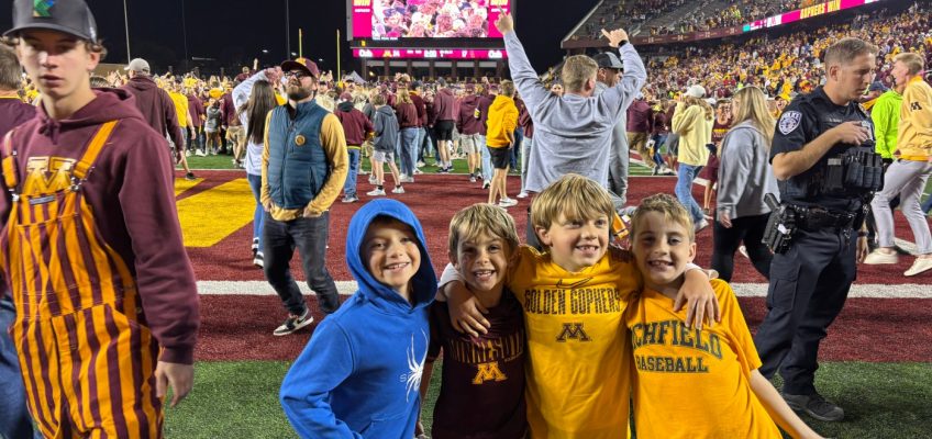 Last year, Fletcher, three of his second-grade friends and two chaperon dads attended the Gophers’ home game against 11th-ranked Southern California. Boyhood antics ensued before and during the game, but when Minnesota pulled off the 24-17 upset, Fletcher didn’t joke around when asked if he wanted the group to join rowdy college kids and elated adults in a field storming.