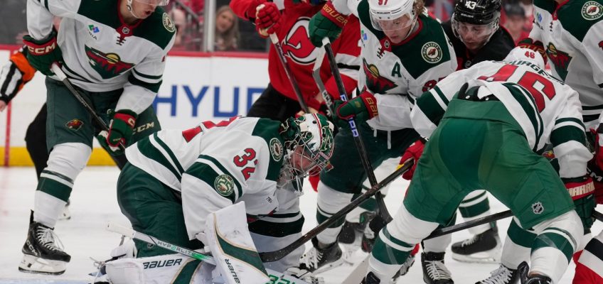It was mostly a defensive battle for the Wild in the early part of the game. They killed a Devils power play in the opening three minutes, and got some puck luck as well. New Jersey center Dawson Mercer had a wide open net to shoot at, with Gustavsson down after making a save, but Mercer’s shot deflected off the shaft of Marco Rossi’s stick and over the net.