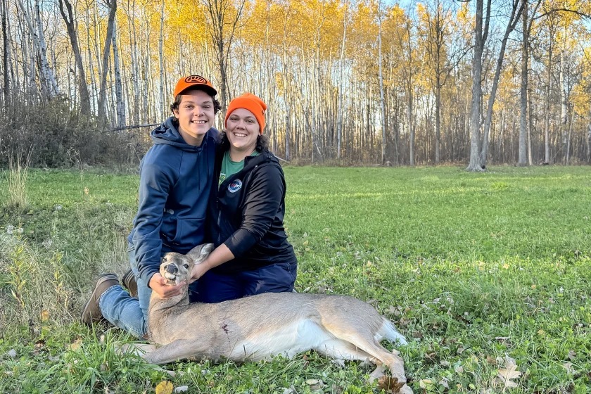 Keagen Dyson and hunting guide Jack Juberian pose with his first deer during an annual United Special Sportsman Alliance Minnesota Dream Hunt on Saturday, Oct. 18, 2025, near Leonard, Minn. (Courtesy photo)