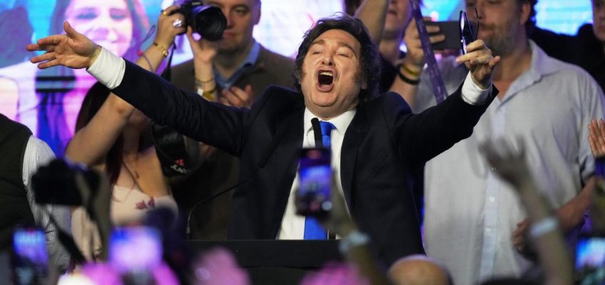 “The Argentine people have decided to leave behind 100 years of decadence,” Milei exulted as his supporters cheered, referring to a succession of Peronist governments that brought Argentina infamy for its inflationary spirals and sovereign debt defaults.