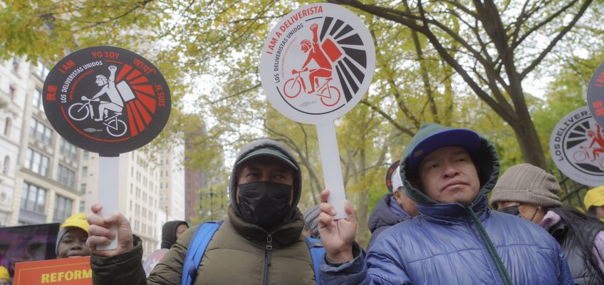 “Please pass those bills,” said Cellou Balde, a delivery worker with the group Los Deliveristas during the rally. “People in New York are often complaining about delivery workers. We are traveling fast. We understand the concern, but often we have no choice. We must take the risk to deliver quick, often on an impossible time frame, to avoid losing our job that we have. Deactivation is a huge problem for our community, because this work is how we survive.”