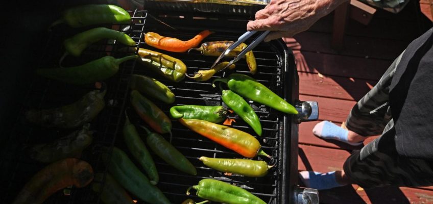 This year, I asked for her to order me some, too, so I wouldn’t have to beg for a Tupperware container of her famed green chile sauce but could instead make it myself. Which is how on a recent Tuesday, I found myself spending the better part of an afternoon helping her roast two huge boxes of mild and medium chiles — 50 pounds in total — on a grill on her deck.