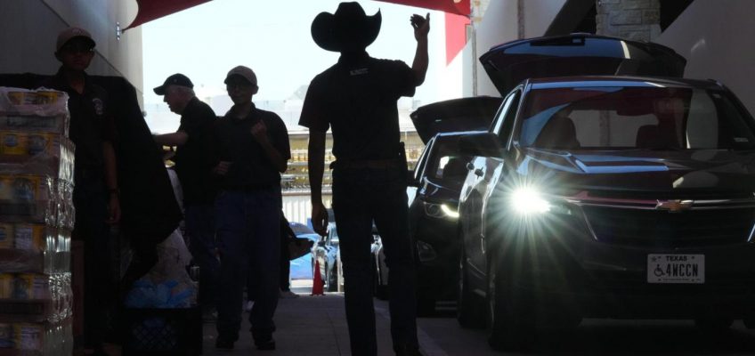 Volunteers help load vehicles during a food distribution at the San Antonio Food Bank for SNAP recipients and other households affected by the federal sutdown, Thursday, Nov. 6, 2025, in San Antonio. (AP Photo/Eric Gay)
