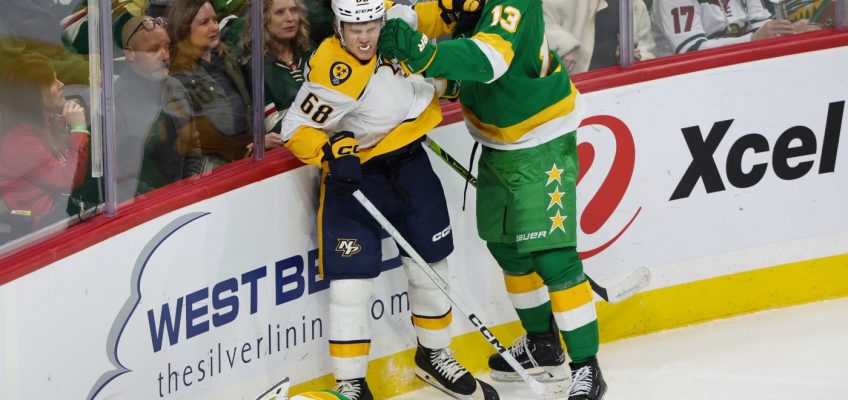 Before Sunday’s games, Wild left winger Yakob Trenin led the NHL with 72 hits. Teammate Marcus Foligno was 10th with 53, making the Wild the only team with two Top 10 hitmen.