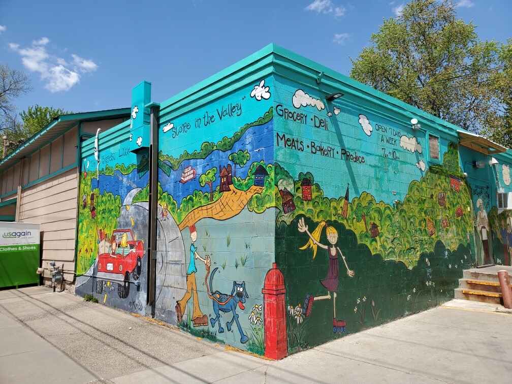 The building, which has operated as a neighborhood grocery store for more than 125 years, is known for its bright blue exterior mural and its motto of being “the biggest little store in the Valley.”