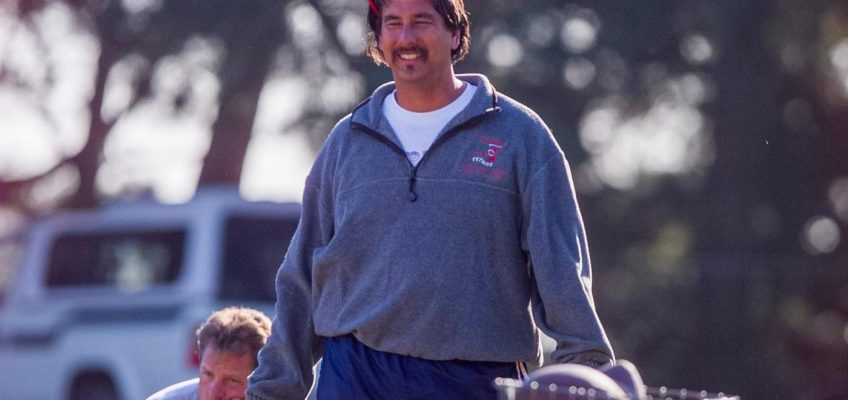 This photo provided by Peralta Community College District shows Laney College Athletic Director John Beam after Laney won the California state football championship in 2018. (Peralta Community College District via AP)