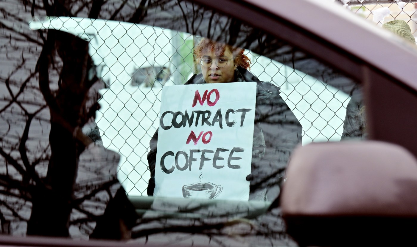 Starbucks workers at that location, as well as dozens of other sites across the country, have been on strike since Nov. 13. The striking workers are demanding higher wages, more work hours, an end to what they say is understaffing and the resolution of alleged retaliatory firings and discipline for union actions. Starbucks has said the company already offers the best wage and benefit package in retail.