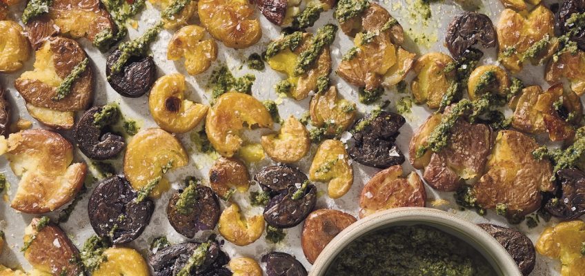Roasted Smashed Baby Potatoes With Wild Greens Pesto