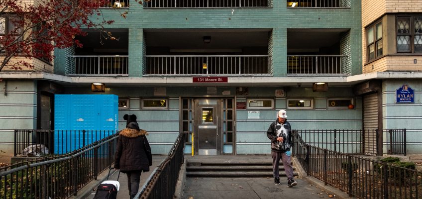NYCHA’s Hylan Houses in Bushwick, Brooklyn, was one of three developments this year where tenants were asked to vote on what funding model they want. (Adi Talwar/City Limits).
