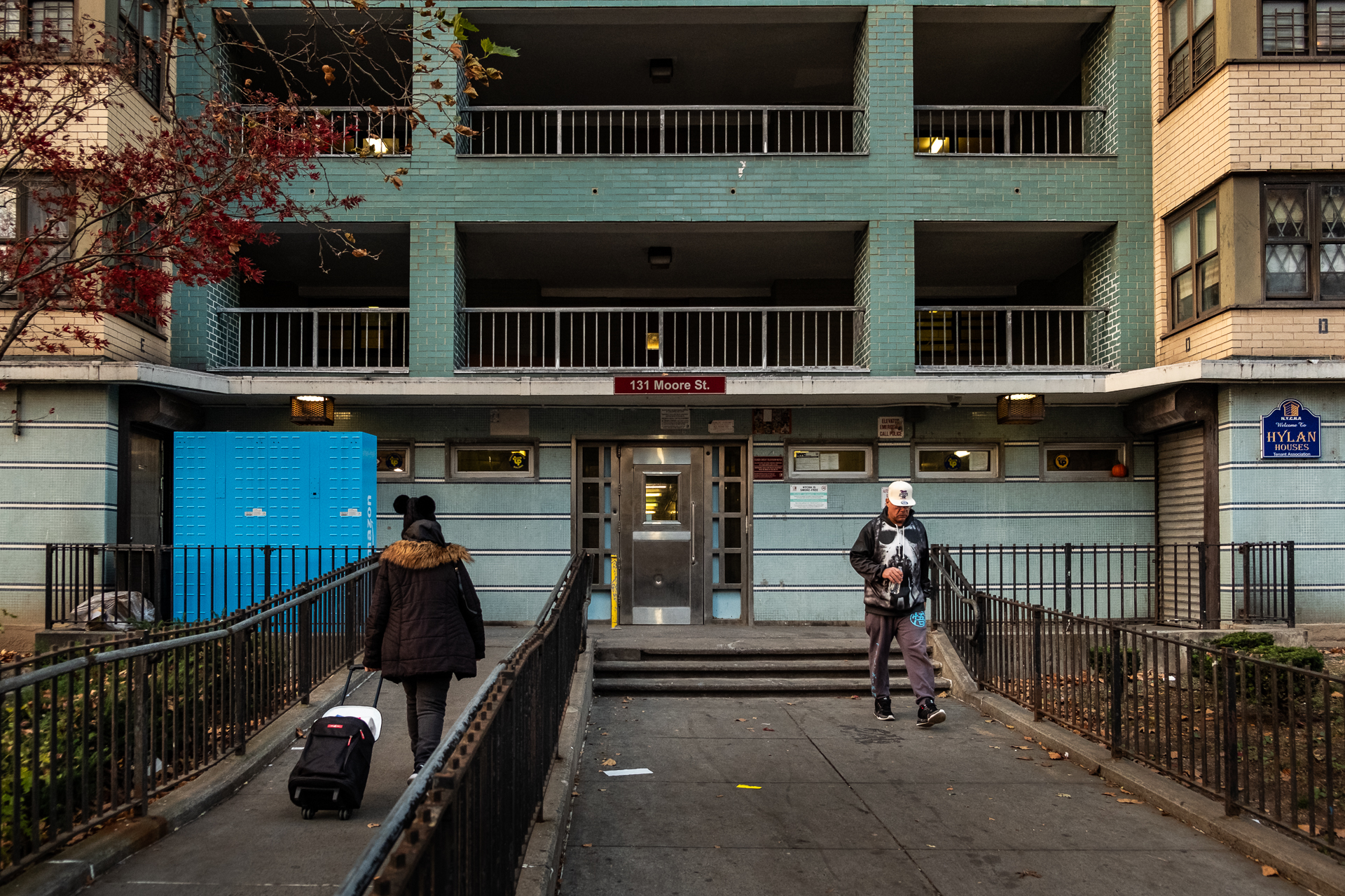 NYCHA’s Hylan Houses in Bushwick, Brooklyn, was one of three developments this year where tenants were asked to vote on what funding model they want. (Adi Talwar/City Limits).