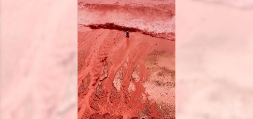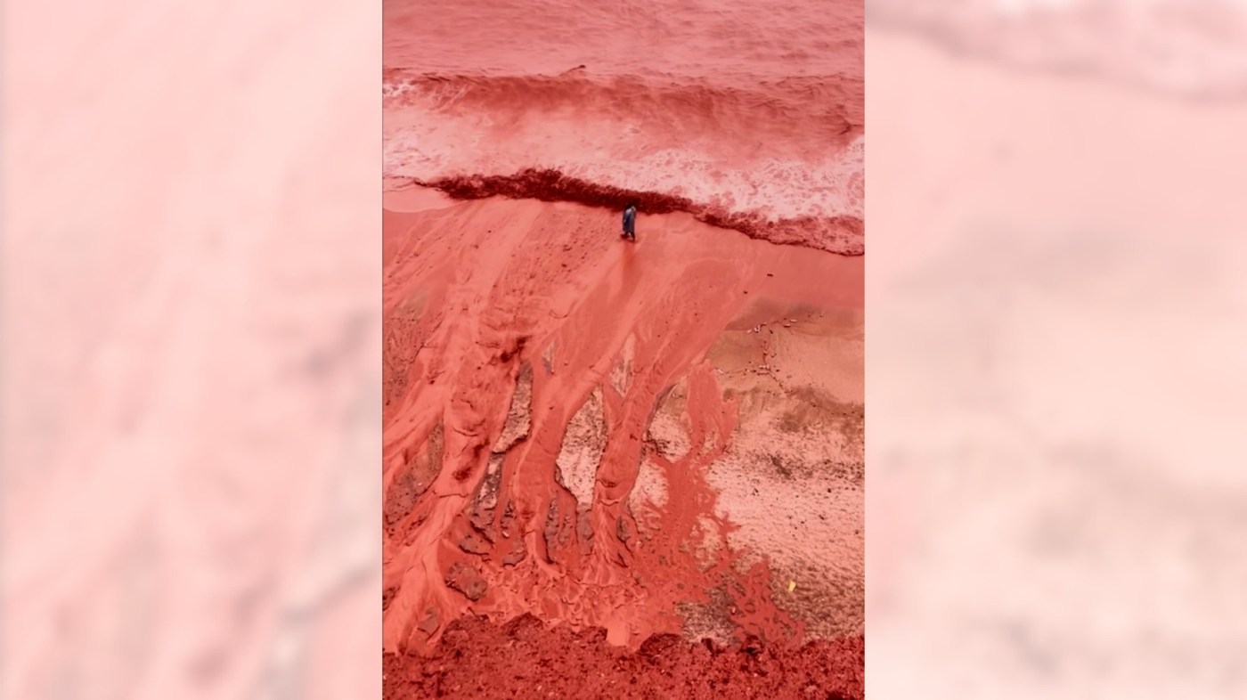 TEHRAN, Iran (AP) — Rainfall on Iran’s Hormuz Island briefly transformed the coastline of its famed Red Beach into a striking natural scene this week, as red soil flowed into the sea and turned the water shades of deep red.