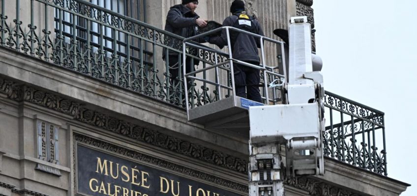 PARIS (AP) — A freight lift rose up on its crane Tuesday toward the Louvre Museum — but this time it wasn’t jewel thieves. It was workers installing security bars on the window used to break into the Paris landmark’s Apollo Gallery in October’s stunning heist.