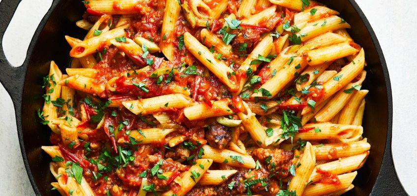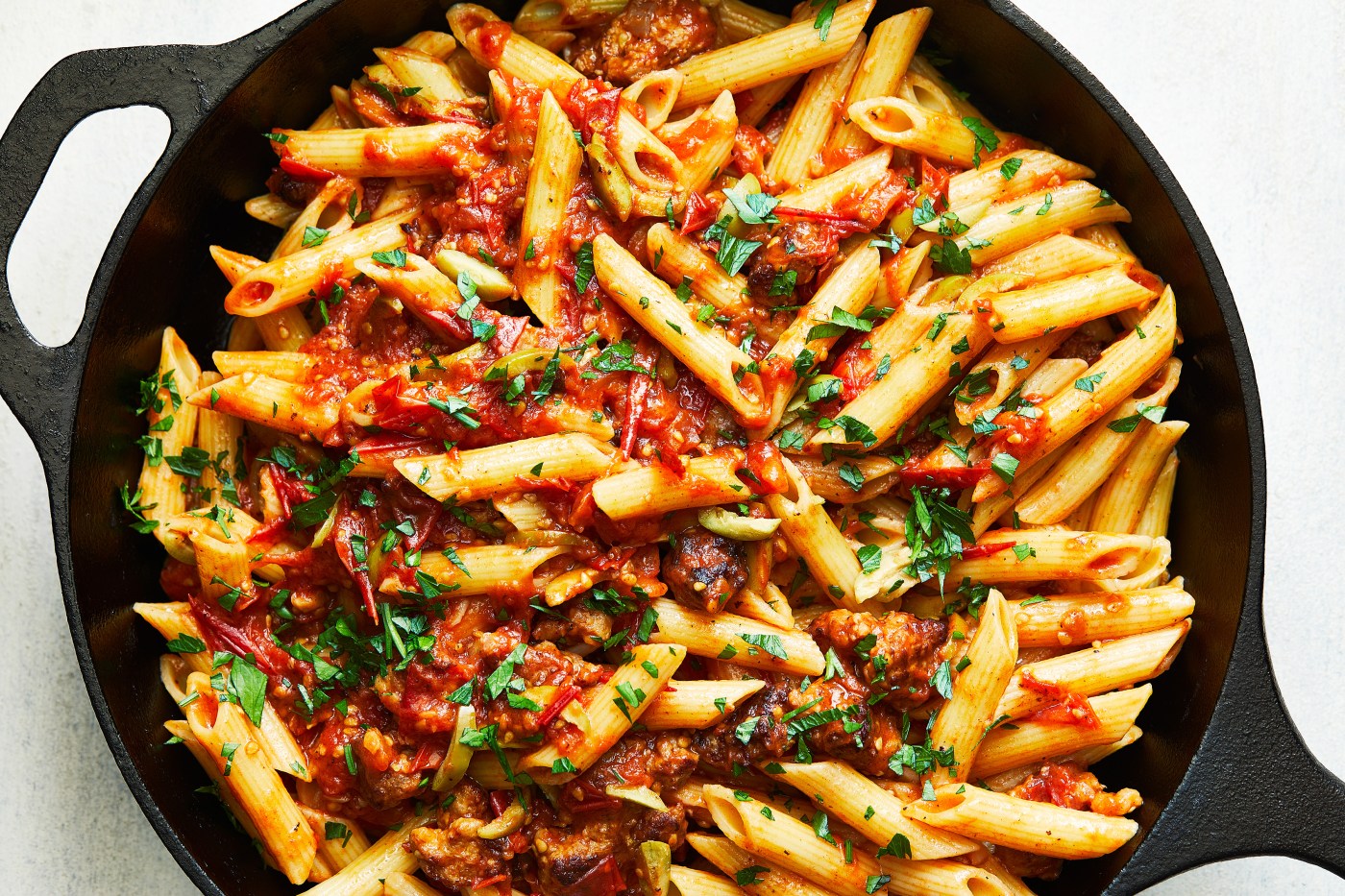 3. Pasta With Spicy Sausages, Tomatoes, Rosemary and Olives