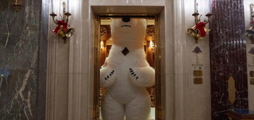 From Bethlehem to Beijing, people around the world are celebrating the Christmas season. A polar bear mascot boards an elevator during holiday revelry. Swimmers plunge into frigid waters off Northern Ireland for a charity event. Singers fill a stadium in Indonesia.