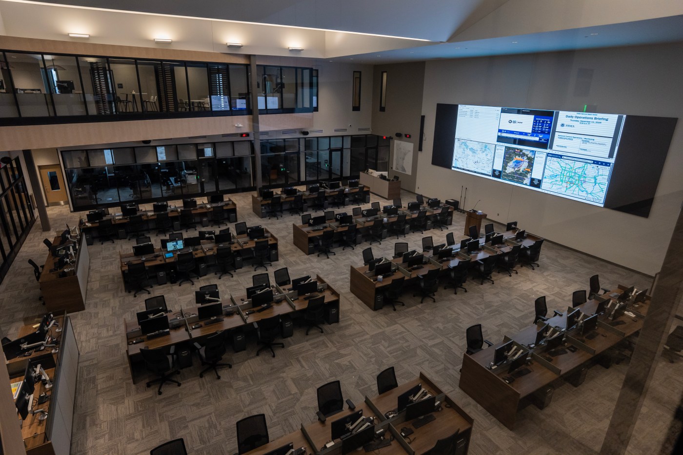 Designed and built by Wold Architects and Engineers, a national architecture and engineering firm, the new center features an exterior built to withstand 165 mph winds and power systems that can keep it operating for up to 72 hours during an outage.
