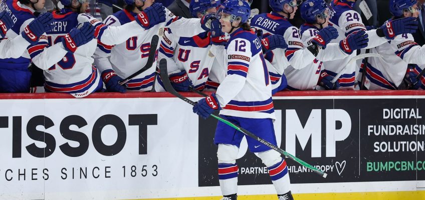 After star USA defenseman Cole Hutson of Boston University left with an injury, Emery’s shifts increased. He helped shore up USA’s defense, which allowed three goals to Germany on Friday.
