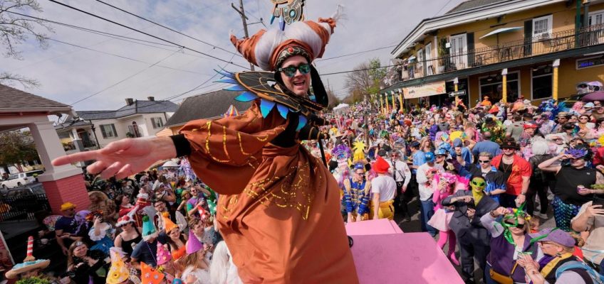 FILE – The streets are filled during the Society of Saint Anne’s parade on Mardi Gras Day, March 4, 2025 in New Orleans. (AP Photo/Gerald Herbert, File)