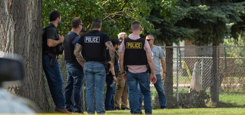 FILE – Law enforcement personnel investigate after the Department of Homeland Security said an Immigration and Customs Enforcement agent fatally shot a man in the Franklin Park suburb of Chicago on Sept. 12, 2025. (Candace Dane Chambers/Chicago Sun-Times via AP, File)