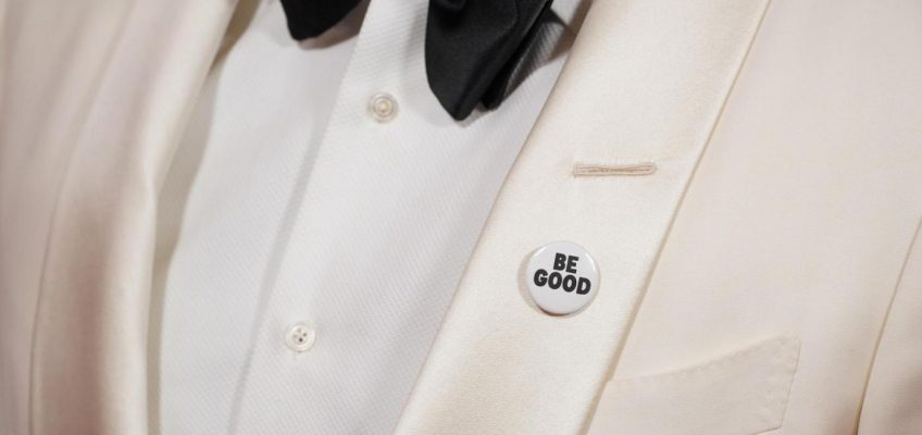 The black-and-white pins displayed slogans like “BE GOOD” and “ICE OUT,” introducing a political angle into the awards show after last year’s relatively apolitical ceremony.