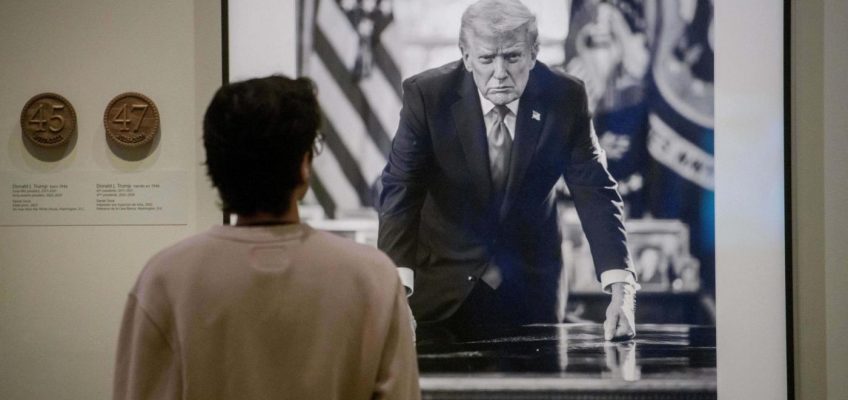 At the White House, Trump designed a partisan and subjective “Presidential Walk of Fame” featuring gilded photographs of himself and predecessors, with plaques on what they did. He excludes Democrat Joe Biden, who is represented instead by an autopen to symbolize what Trump has described as a presidency in absentia.