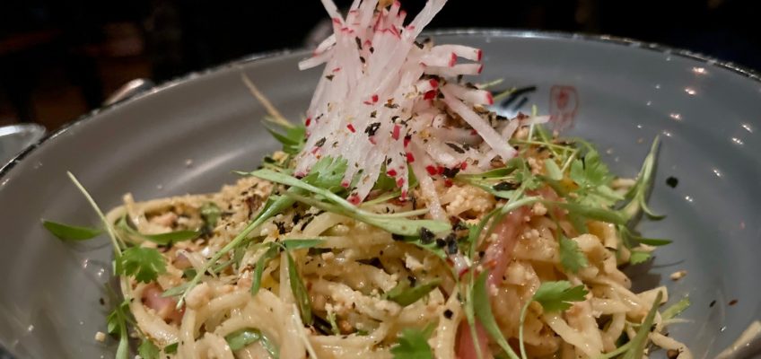 We loved everything we ordered — from corn ribs (now out of season) to a fresh, deeply umami daikon pad thai to crisp smashed potatoes smothered in a zippy horseradish aioli and fried chicken in a steamed bun (you know, for balance).