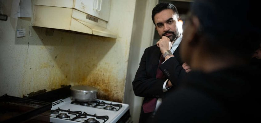 Mamdani touring an apartment at a Brooklyn building previously owned by the Pinnacle Group earlier this month. (Michael Appleton/Mayoral Photography Office)