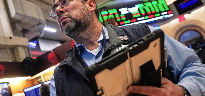 NEW YORK (AP) — Stocks wavered in morning trading on Wall Street Friday as the first week of corporate earnings season closes out with markets trading near record levels.