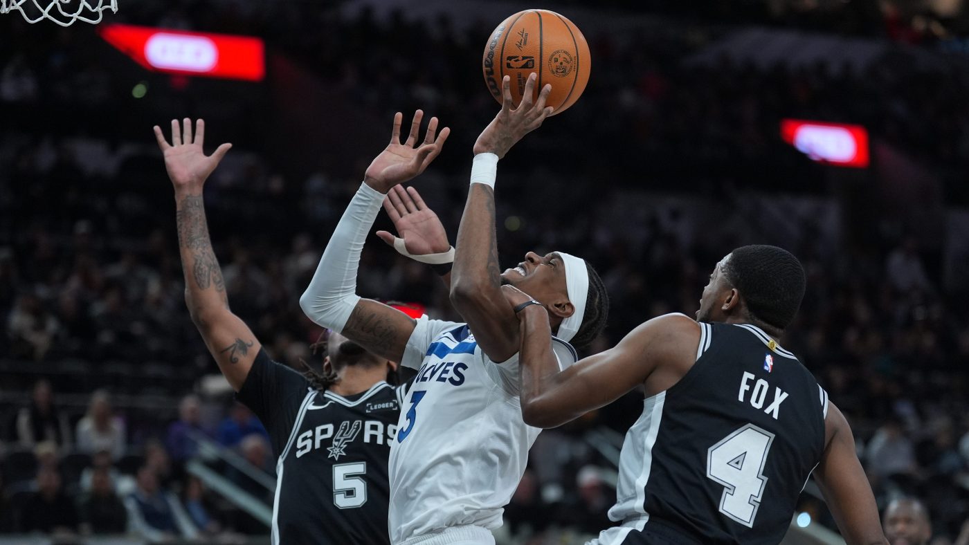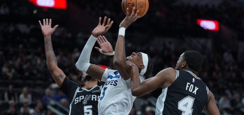 De’Aaron Fox added 25 points and 12 assists as San Antonio avoided a season sweep of its three-game set against Minnesota. Keldon Johnson added 20 points for the Spurs.