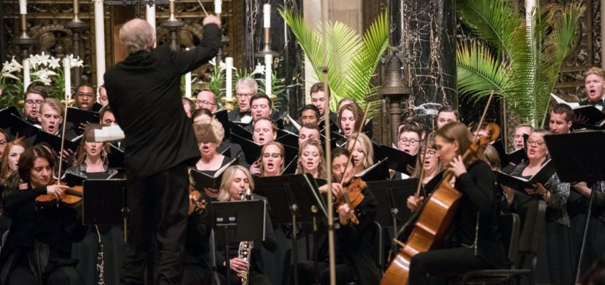 The English choral music legend joined the VocalEssence Chorus and Ensemble Singers, along with a chamber orchestra and soloists Audrey Lane-Getaz and G. Phillip Shoultz III, for an afternoon of reverberating voices inside the cathedral’s stone walls. The sold-out performance followed a sing-along event the previous day with the British composer/conductor at Plymouth Congregational Church in Minneapolis.