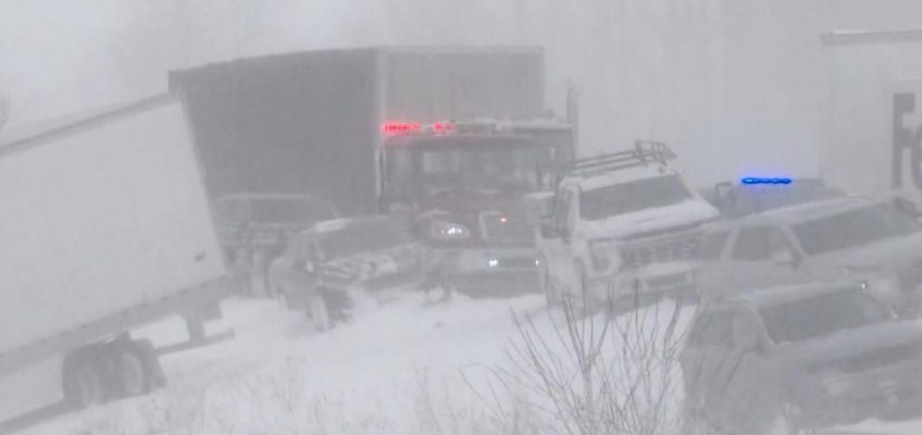 100 vehicles pile up in Michigan crash as snowstorm moves across the country