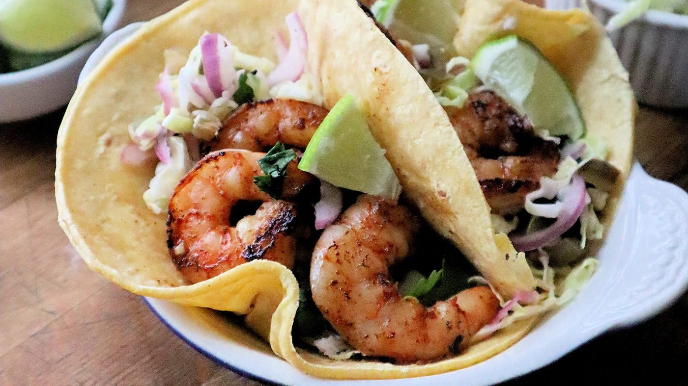 Tacos are a welcome weeknight meal because they don’t take a lot of time or effort. These feature quick marinated shrimp and an easy green cabbage slaw. They’re simple but super satisfying.