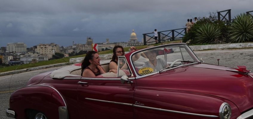 HAVANA (AP) — It’s almost noon in Havana when a handful of tourists tumble out of a small yellow bus and rush toward a row of shiny classic cars, cameras in hand.