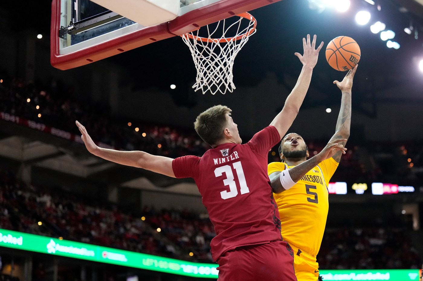 The lead ballooned to 27-9 when the Gophers turned a Wisconsin turnover into a jumper by Kai Shinholster from the top of the key.