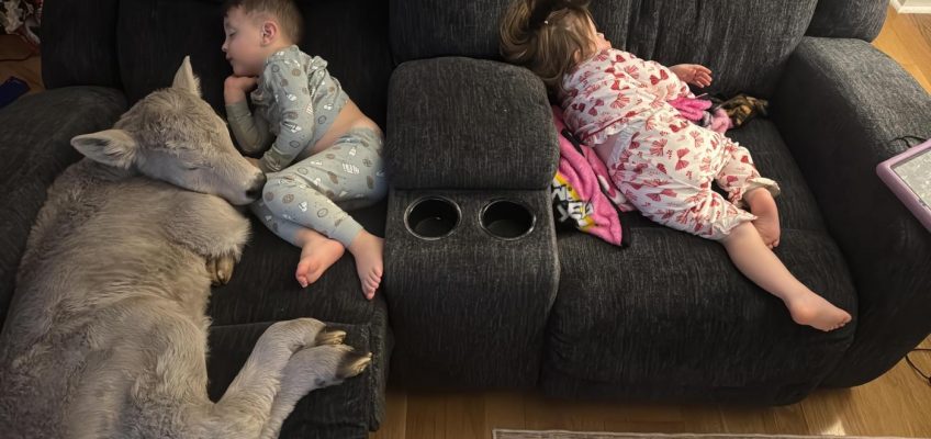 Hours later, the calf, fed and fluffed, took a spot on the couch with the Sorrell family’s two children. Their mom, Macey Sorrell, snapped some photos and later posted them to social media, and the cuteness did not go unnoticed.
