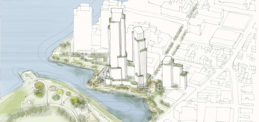 A rendering of the Monitor Point development proposed for the Greenpoint waterfront. (FXCollaborative Architects)