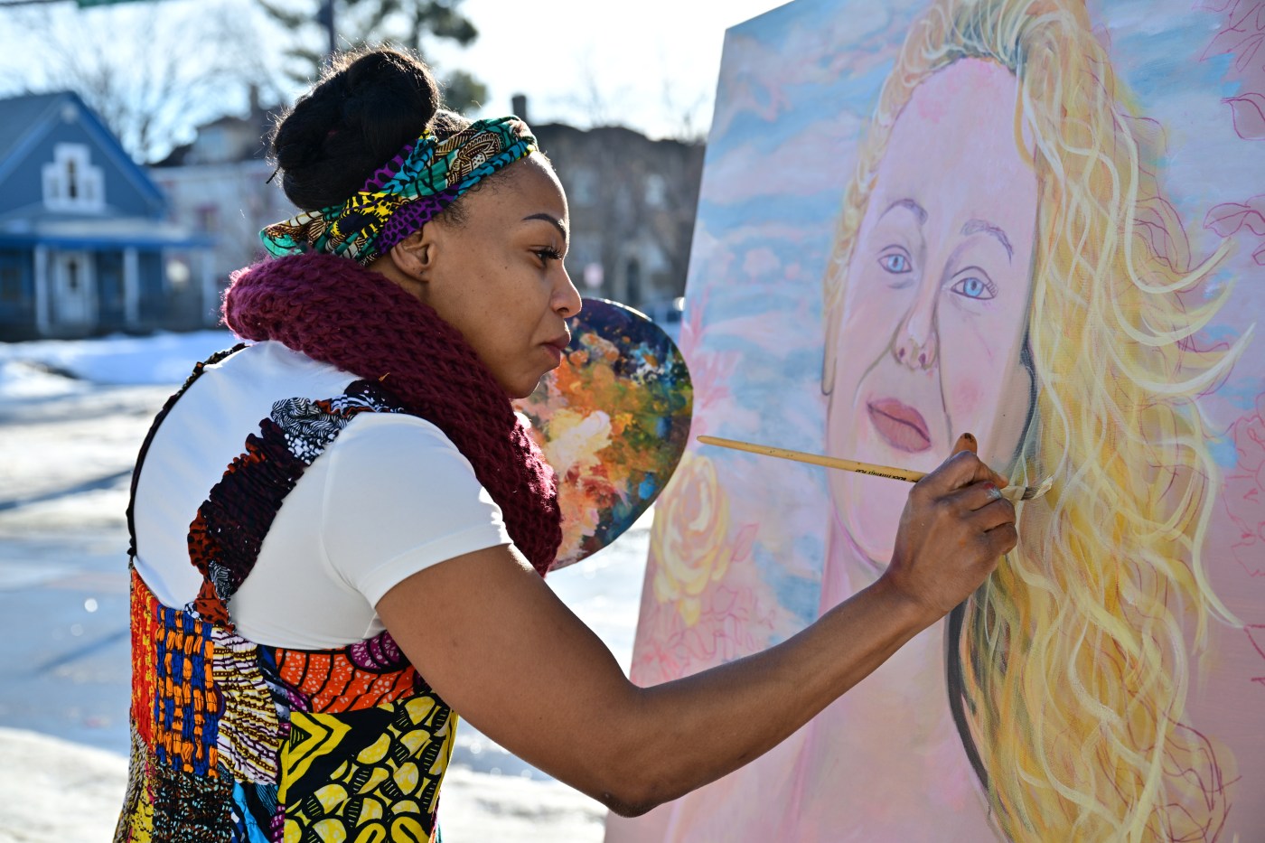 In the days after immigration agents shot and killed Renee Good on Jan. 7 in Minneapolis, live painter Noval Noir created a large-scale portrait of Good at the site.