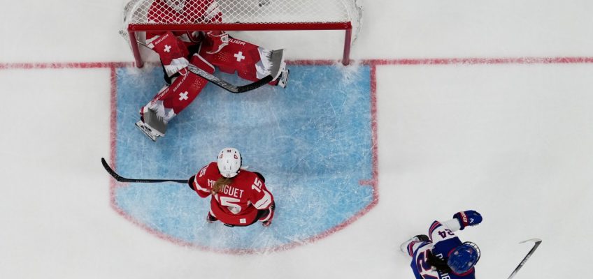 MILAN, Italy — Caroline Harvey and Joy Dunne each had a goal and two assists, Gwyneth Philips stopped 20 shots in her Olympic debut, and the United States defeated Switzerland 5-0 in the women’s hockey tournament on Monday.