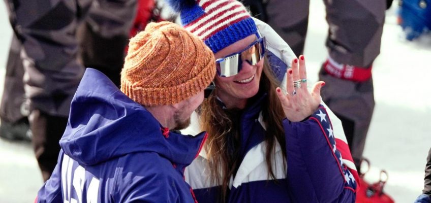 Johnson’s longtime boyfriend, Connor Watkins, proposed to her near the finish line while surrounded by members of the U.S. Ski Team.