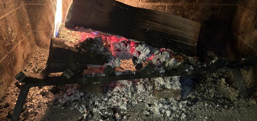 A bucket of ash appears by a fireplace at a home in Waitsfield, Vt. on Monday, Feb. 9, 2026. (AP Photo/Carolyn Lessard)