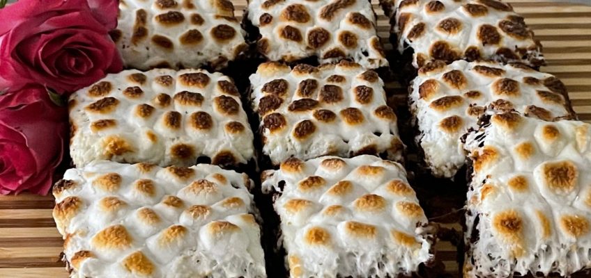 Two things. Be sure to use a metal baking pan and not a glass baking dish in this recipe. And two, when the marshmallow topped beauty goes under the broiler, keep a watchful eye on it.